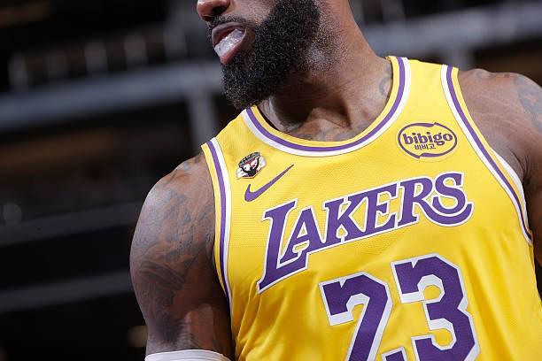 本场比赛,湖人前锋詹姆斯首次身着印有其个人形象的纪念款球衣出战。