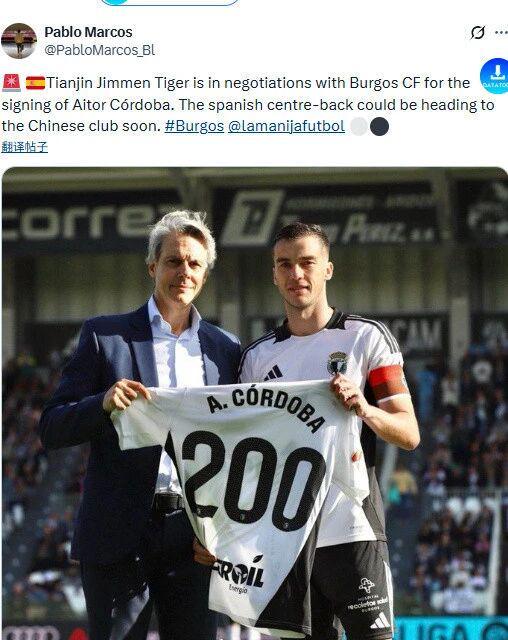 北京时间1月23日,中超联赛最新转会动态,上个赛季取得联赛第6的天津津门虎官宣外援离队,30岁的西乙球队队长接近加盟。